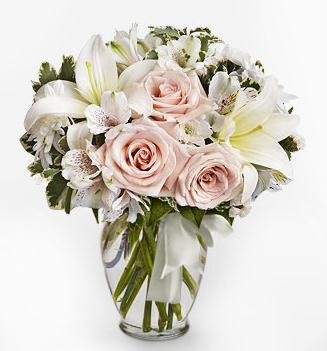 SOPHISTICATIONA sophisticated flower bouquet in white flowers. Vase is not included. |