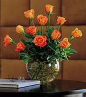 Show someone they're extra special with this romantic arrangement. One dozen Orange roses arranged in a vase.
