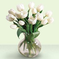 Love Is in The AirLong to see your special person once more? Let her know it by sending her these 10 pieces of white tulips with gorgeous glass vase! Note: Color may vary. |