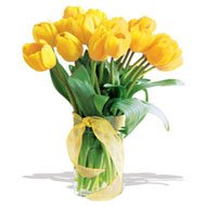 When we will meat againThis cheerful arrangement of 10 pieces yellow tulip with gorgeous glass vase. Note: Color may vary. |